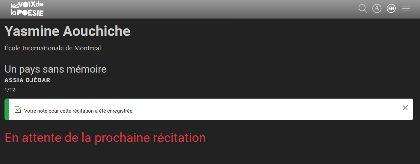 - Avant le concours, Les voix de la poésie vous enverront un lien pour vous connecter à votre compte sur notre site web.